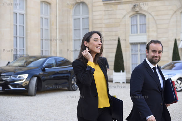 Légende : Conseil des ministres au palais de l'Elysée. Brune Poirson, secrétaires d'Etat auprès du ministre de la Transition écologique et solidaire - Sébastien Lecornu, secrétaires d'Etat auprès du ministre de la Transition écologique et solidaire /// Cabinet meeting at the Elysee Palace. Brune Poirson, Junior Minister attached to the Minister of Ecological and Concerted Transition - Sébastien Lecornu, Junior Minister attached to the Minister of Ecological and Concerted Transition - Paris - 07/11/2017 - Photo © Lionel Préau +33 (0)6 68 12 83 77