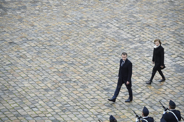 Légende : Emmanuel Macron préside la prise d'armes dans la cour d'honneur de l'Hôtel des Invalides. En présence de Florence Parly, ministre des Armées /// Emmanuel Macron chairs a military ceremony at the Hôtel des Invalides. With Florence Parly, Minister of the Armed Forces - Paris - 27/11/2017 - Photo © Lionel Préau +33 (0)6 68 12 83 77