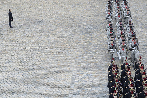 Légende : Emmanuel Macron préside la prise d'armes dans la cour d'honneur de l'Hôtel des Invalides /// Emmanuel Macron chairs a military ceremony at the Hôtel des Invalides - Paris - 27/11/2017 - Photo © Lionel Préau +33 (0)6 68 12 83 77