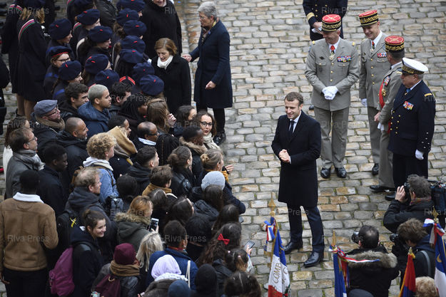 Légende : Emmanuel Macron préside la prise d'armes dans la cour d'honneur de l'Hôtel des Invalides /// Emmanuel Macron chairs a military ceremony at the Hôtel des Invalides - Paris - 27/11/2017 - Photo © Lionel Préau +33 (0)6 68 12 83 77