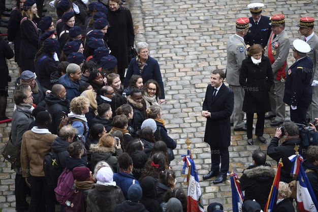 Légende : Emmanuel Macron préside la prise d'armes dans la cour d'honneur de l'Hôtel des Invalides /// Emmanuel Macron chairs a military ceremony at the Hôtel des Invalides - Paris - 27/11/2017 - Photo © Lionel Préau +33 (0)6 68 12 83 77
