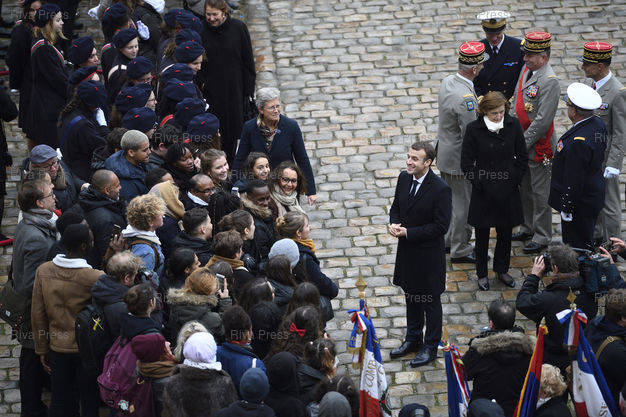 Légende : Emmanuel Macron préside la prise d'armes dans la cour d'honneur de l'Hôtel des Invalides /// Emmanuel Macron chairs a military ceremony at the Hôtel des Invalides - Paris - 27/11/2017 - Photo © Lionel Préau +33 (0)6 68 12 83 77