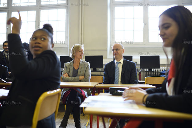 Légende : Jean-Michel Blanquer, ministre de l'Éducation nationale, et Sophie Cluzel, secrétaire d'État chargée des Personnes handicapées, se rendent au lycée professionnel Gustave Eiffel dans le cadre de la journée internationale des Personnes handicapées - Paris - 04/12/2017 - Photo © Lionel Préau +33 (0)6 68 12 83 77