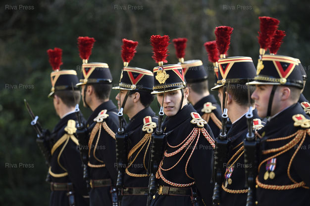 Légende : Emmanuel Macron reçoit Benyamin Netanyahou, Premier ministre d'Israël, pour un déjeuner de travail au Palais de l'Elysée. Soldats de la Garde Républicaine /// Emmanuel Macron receives Benjamin Netanyahou, Prime Minister of Israel, for a working lunch at the Elysee Palace. Soldiers of the Republican Guard - Paris - 10/12/2017 - Photo © Lionel Préau +33 (0)6 68 12 83 77