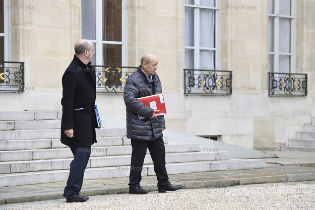Légende : Conseil des ministres au palais de l'Elysée. Jean-Michel Blanquer, ministre de l'Education nationale - Jean-Yves Le Drian, ministre de l'Europe et des Affaires étrangères /// Cabinet meeting at the Elysee Palace. Jean-Michel Blanquer, Minister of National Education - Jean-Yves Le Drian, Minister of Europe and Foreign Affairs - Paris - 20/12/2017 - Photo © Lionel Préau +33 (0)6 68 12 83 77