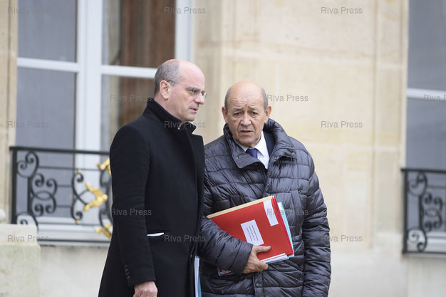Légende : Conseil des ministres au palais de l'Elysée. Jean-Michel Blanquer, ministre de l'Education nationale - Jean-Yves Le Drian, ministre de l'Europe et des Affaires étrangères /// Cabinet meeting at the Elysee Palace. Jean-Michel Blanquer, Minister of National Education - Jean-Yves Le Drian, Minister of Europe and Foreign Affairs - Paris - 20/12/2017 - Photo © Lionel Préau +33 (0)6 68 12 83 77