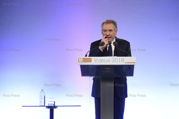 Caption : François Bayrou, président du Mouvement démocrate (Modem), présente ses voeux à la presse /// François Bayrou, President of the Mouvement Democrate Party (Modem), presents his best wishes for the new year to the press - Paris - 11/01/2018 - Photo © Lionel Préau +33 (0)6 68 12 83 77