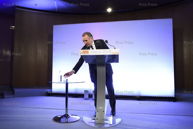 Caption : François Bayrou, président du Mouvement démocrate (Modem), présente ses voeux à la presse /// François Bayrou, President of the Mouvement Democrate Party (Modem), presents his best wishes for the new year to the press - Paris - 11/01/2018 - Photo © Lionel Préau +33 (0)6 68 12 83 77