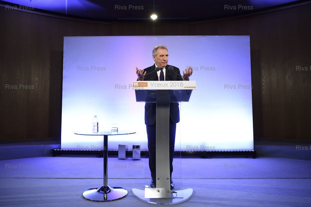 Caption : François Bayrou, président du Mouvement démocrate (Modem), présente ses voeux à la presse /// François Bayrou, President of the Mouvement Democrate Party (Modem), presents his best wishes for the new year to the press - Paris - 11/01/2018 - Photo © Lionel Préau +33 (0)6 68 12 83 77