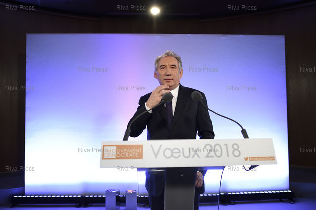 Légende : François Bayrou, président du Mouvement démocrate (Modem), présente ses voeux à la presse /// François Bayrou, President of the Mouvement Democrate Party (Modem), presents his best wishes for the new year to the press - Paris - 11/01/2018 - Photo © Lionel Préau +33 (0)6 68 12 83 77