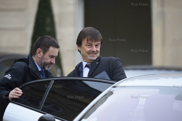 Caption : Conseil des ministres au palais de l'Elysée. Nicolas Hulot, ministre d'Etat, ministre de la Transition écologique et solidaire /// Cabinet meeting at the Elysee Palace. Nicolas Hulot, Minister of State, Minister of Ecological and Concerted Transition - Paris - 12/01/2018 - Photo © Lionel Préau +33 (0)6 68 12 83 77
