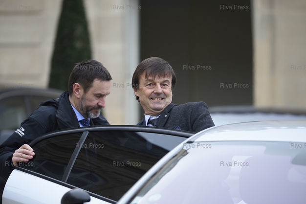 Caption : Conseil des ministres au palais de l'Elysée. Nicolas Hulot, ministre d'Etat, ministre de la Transition écologique et solidaire /// Cabinet meeting at the Elysee Palace. Nicolas Hulot, Minister of State, Minister of Ecological and Concerted Transition - Paris - 12/01/2018 - Photo © Lionel Préau +33 (0)6 68 12 83 77