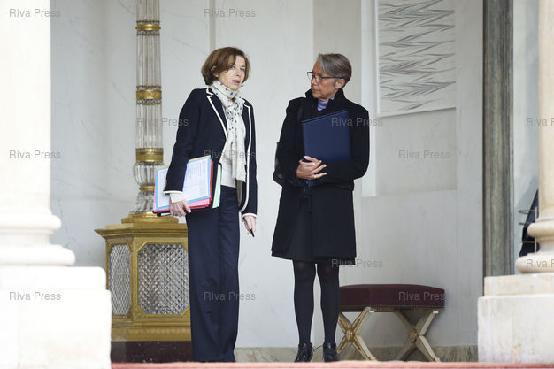 Caption : Conseil des ministres au palais de l'Elysée. Florence Parly, ministre des Armées - Elisabeth Borne, ministre des Transports /// Cabinet meeting at the Elysee Palace. Florence Parly, Minister of the Armed Forces - Elisabeth Borne, Minister of Transports - Paris - 12/01/2018 - Photo © Lionel Préau +33 (0)6 68 12 83 77