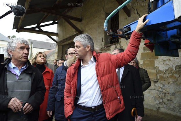 Caption : Laurent Wauquiez, Président des Républicains, et Valérie Pécresse, Présidente de la Région Ile-de-France, présidente du mouvement "Soyons libres !" associé aux Républicains, apportent leur soutien à Antoine Savignet, candidat LR à l'élection législative partielle dans la 1ère circonscription du Val d'Oise, lors de la visite d'une exploitation agricole à Saillancourt /// Laurent Wauquiez, President of the Les Republicains Party, and Valérie Pécresse, President of the Ile-de-France Region, President of the "Soyons libres !" movement associated to Les Républicains, support Antopine Savignet, LR candidate to the by-election in the 1st district of the Val d'Oise, during a visit of an agricultural exploitation - Saillancourt - 31/01/2018 - Photo © Lionel Préau +33 (0)6 68 12 83 77