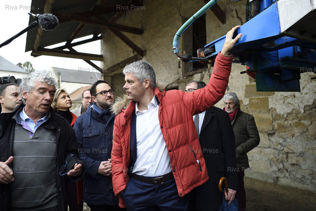 Légende : Laurent Wauquiez, Président des Républicains, et Valérie Pécresse, Présidente de la Région Ile-de-France, présidente du mouvement "Soyons libres !" associé aux Républicains, apportent leur soutien à Antoine Savignet, candidat LR à l'élection législative partielle dans la 1ère circonscription du Val d'Oise, lors de la visite d'une exploitation agricole à Saillancourt /// Laurent Wauquiez, President of the Les Republicains Party, and Valérie Pécresse, President of the Ile-de-France Region, President of the "Soyons libres !" movement associated to Les Républicains, support Antopine Savignet, LR candidate to the by-election in the 1st district of the Val d'Oise, during a visit of an agricultural exploitation - Saillancourt - 31/01/2018 - Photo © Lionel Préau +33 (0)6 68 12 83 77