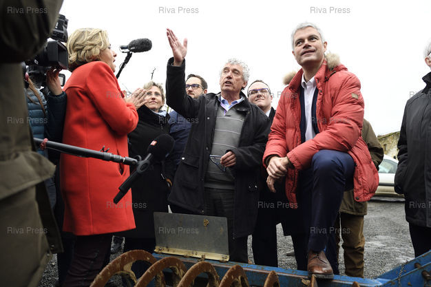 Caption : Laurent Wauquiez, Président des Républicains, et Valérie Pécresse, Présidente de la Région Ile-de-France, présidente du mouvement "Soyons libres !" associé aux Républicains, apportent leur soutien à Antoine Savignet, candidat LR à l'élection législative partielle dans la 1ère circonscription du Val d'Oise, lors de la visite d'une exploitation agricole à Saillancourt /// Laurent Wauquiez, President of the Les Republicains Party, and Valérie Pécresse, President of the Ile-de-France Region, President of the "Soyons libres !" movement associated to Les Républicains, support Antopine Savignet, LR candidate to the by-election in the 1st district of the Val d'Oise, during a visit of an agricultural exploitation - Saillancourt - 31/01/2018 - Photo © Lionel Préau +33 (0)6 68 12 83 77