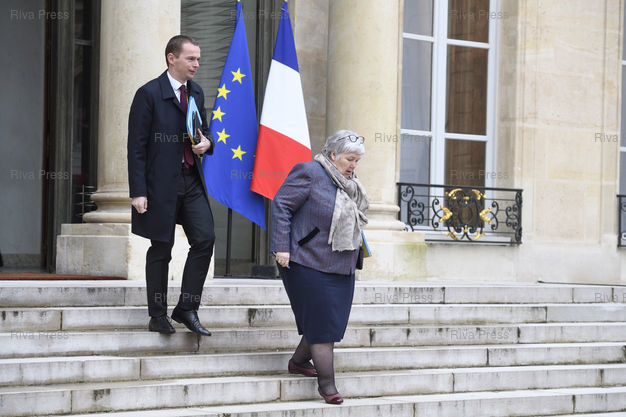 Légende : Conseil des ministres au palais de l'Elysée. Olivier Dussopt, Secrétaire d'État auprès du ministre de l'Action et des Comptes publics - Jacqueline Gourault, ministre auprès du ministre de l'Intérieur /// Cabinet meeting at the Elysee Palace. Olivier Dussopt, Junior Minister attached to the Minister of the Action and Public Accounts - Jacqueline Gourault, Minister attached to the Minister of Interior - Paris - 14/02/2018 - Photo © Lionel Préau +33 (0)6 68 12 83 77