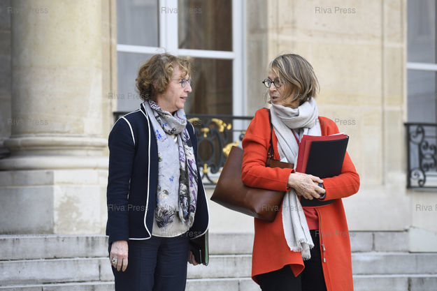 Légende : Conseil des ministres au palais de l'Elysée. Muriel Pénicaud, ministre du Travail - Françoise Nyssen, ministre de la Culture /// Cabinet meeting at the Elysee Palace. Muriel Pénicaud, Minister of Labour - Françoise Nyssen, Minister of Culture - Paris - 21/02/2018 - Photo © Lionel Préau +33 (0)6 68 12 83 77