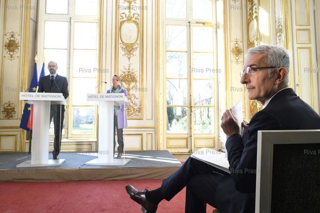Caption : Edouard Philippe, premier ministre, présente la réforme de la SNCF - Hôtel de Matignon. En présence d'Elisabeth Borne, ministre des Transports, et Guillaume Pepy, président du directoire de la SNCF /// Edouard Philippe, Prime Minister, presents the reform of the SNCF (French national railway company) - Hôtel de Matignon. With Elisabeth Borne, Minister of Transports, and Guillaume Pepy, President of the Board of the SNCF - Paris - 26/02/2018 - Photo © Lionel Préau +33 (0)6 68 12 83 77