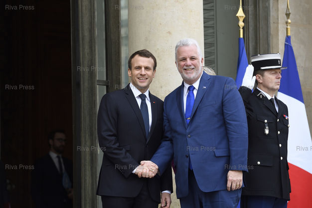 Légende : Emmanuel Macron reçoit Philippe Couillard, Premier ministre du Québec, au palais de l'Elysée /// Emmanuel Macron receives Philippe Couillard, Prime Minister of Quebec, at the Elysee Palace - Paris - 05/03/2018 - Photo © Lionel Préau +33 (0)6 68 12 83 77