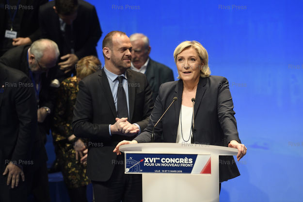 Légende : Congrès du Front National. Marine Le Pen, réélue présidente du FN, avec Steeve Briois /// Convention of the far-right Front National Party. Marine Le Pen, President of the FN, reelected President of the FN, and Steeve Briois, MEP - Lille - 11/03/2018 - Photo © Lionel Préau +33 (0)6 68 12 83 77
