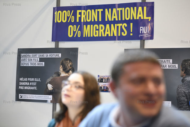 Mots-clés : 2018, Affiche, Affiches, Ambiance, campagne, Congres, congress, convention, etrangers, Far right, FN, Front national, Illustration, Immigration, Lille, Migrants, Militants, Stand, stands