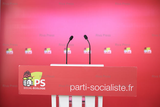 Mots-clés : 2018, Déclaration, decors, election, Illustration, Logo, Micros, Paris, Parti socialiste, PS, Pupitre, siege ps, Socialistes, Solferino