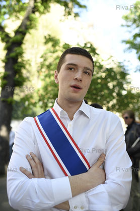 Légende : Le Front national proteste devant l'Assemblée nationale contre le projet de loi asile et immigration du gouvernement. Jordan Bardella, Porte-parole du FN, Directeur National du Front National de la Jeunesse /// The far-right Front National Party protests in front of the National Assembly against the government's asylum and immigration bill. Jordan Bardella, FN Spokesperson, National Director of the Front National of Youth - Paris - 20/04/2018 - Photo © Lionel Préau +33 (0)6 68 12 83 77