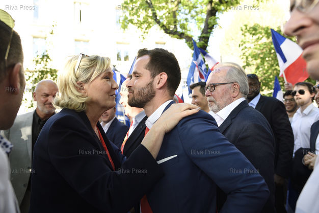 Légende : Le Front national proteste devant l'Assemblée nationale contre le projet de loi asile et immigration du gouvernement. En présence de Marine Le Pen, présidente du FN /// The far-right Front National Party protests in front of the National Assembly against the government's asylum and immigration bill. With Marine Le Pen, President of the Front National Party - Paris - 20/04/2018 - Photo © Lionel Préau +33 (0)6 68 12 83 77