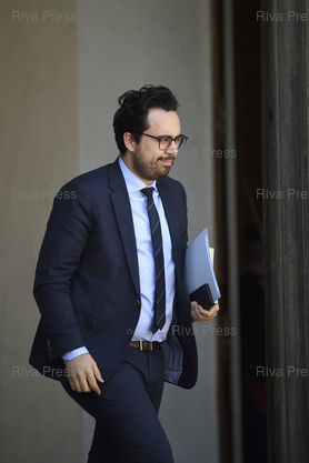Légende : Conseil des ministres au palais de l'Elysée. Mounir Mahjoubi, secrétaire d'Etat chargé du Numérique /// Cabinet meeting at the Elysee Palace. Mounir Mahjoubi, Junior Minister in charge of Digital - Paris - 20/04/2018 - Photo © Lionel Préau +33 (0)6 68 12 83 77