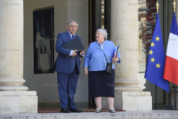 Légende : Conseil des ministres au palais de l'Elysée. Jacques Mézard, ministre de la Cohésion des territoires - Jacqueline Gourault, ministre auprès du ministre de l'Intérieur /// Cabinet meeting at the Elysee Palace. Jacques Mézard, Minister of the Territories Cohesion - Jacqueline Gourault, Minister attached to the Minister of Interior - Paris - 20/04/2018 - Photo © Lionel Préau +33 (0)6 68 12 83 77