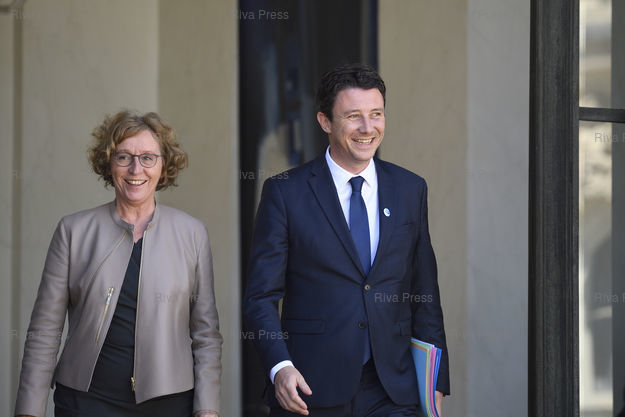 Légende : Conseil des ministres au palais de l'Elysée. Muriel Pénicaud, ministre du Travail - Benjamin Griveaux, secrétaire d'Etat auprès du premier ministre, porte-parole du Gouvernement /// Cabinet meeting at the Elysee Palace. Muriel Pénicaud, Minister of Labour - Benjamin Griveaux, Junior Minister, Spokesperson of the Government - Paris - 27/04/2018 - Photo © Lionel Préau +33 (0)6 68 12 83 77
