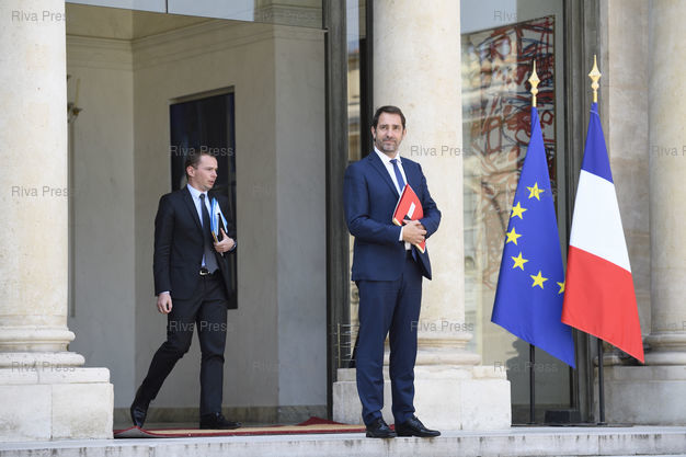 Caption : Conseil des ministres au palais de l'Elysée. Olivier Dussopt, Secrétaire d'État auprès du ministre de l'Action et des Comptes publics - Christope Castaner, Secrétaire d'État auprès du Premier ministre, chargé des Relations avec le Parlement /// Cabinet meeting at the Elysee Palace. Olivier Dussopt, Secrétaire d'État auprès du ministre de l'Action et des Comptes publics - Christope Castaner, Junior Minister in charge of the Relationships with the Parliament - Paris - 09/05/2018 - Photo © Lionel Préau +33 (0)6 68 12 83 77