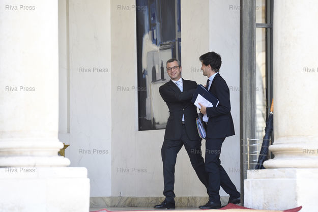 Légende : Conseil des ministres au palais de l'Elysée. Alexis Kohler, secrétaire général de l'Elysée - Julien Denormandie, secrétaire d'Etat auprès du ministre de la Cohésion des territoires /// Cabinet meeting at the Elysee Palace. Alexis Kohler, Secretary General of the Elysee - Julien Denormandie, Junior Minister attached to the Minister of the Territories Cohesion - Paris - 09/05/2018 - Photo © Lionel Préau +33 (0)6 68 12 83 77