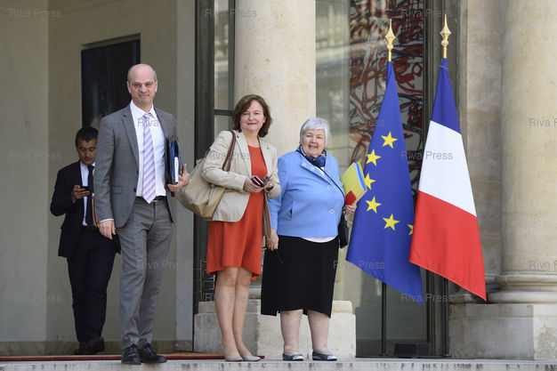 Légende : Conseil des ministres au palais de l'Elysée. Jean-Michel Blanquer, ministre de l'Education nationale - Nathalie Loiseau, ministre des Affaires européennes - Jacqueline Gourault, ministre auprès du ministre de l'Intérieur /// Cabinet meeting at the Elysee Palace. Jean-Michel Blanquer, Minister of National Education - Nathalie Loiseau, Minister of European Affairs - Jacqueline Gourault, Minister attached to the Minister of Interior - Paris - 16/05/2018 - Photo © Lionel Préau +33 (0)6 68 12 83 77