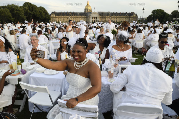 Légende : 30ème Dîner en blanc sur l'esplanade des Invalides. Américains. Participants américains /// 30th Dinner in White on the Esplanade des Invalides. American participants - Paris - 03/06/2018 - Photo © Lionel Préau +33 (0)6 68 12 83 77