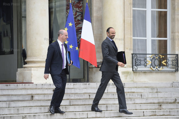 Légende : Conseil des ministres au palais de l'Elysée. Jean-Michel Blanquer, ministre de l'Education nationale, et Edouard Philippe, premier ministre /// Cabinet meeting at the Elysee Palace. Jean-Michel Blanquer, Minister of National Education, and Edouard Philippe, Prime Minister - Paris - 06/06/2018 - Photo © Lionel Préau +33 (0)6 68 12 83 77