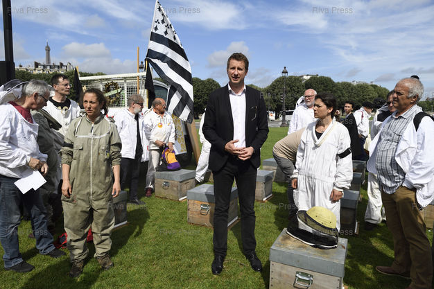 Légende : Les apiculteurs manifestent pour demander au gouvernement un plan de soutien exceptionnel. Yannick Jadot, député écologiste européen /// Beekeepers demonstrate to ask government for exceptional support plan. Yannick Jadot, Ecologist MEP - Paris - 07/06/2018 - Photo © Lionel Préau +33 (0)6 68 12 83 77