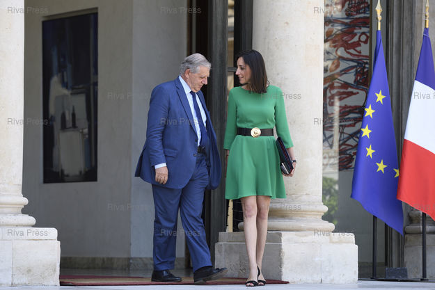 Légende : Conseil des ministres au palais de l'Elysée. Jacques Mézard, ministre de la Cohésion des territoires - Brune Poirson, secrétaire d'Etat auprès du ministre de la Transition écologique et solidaire /// Cabinet meeting at the Elysee Palace. Jacques Mézard, Minister of the Territories Cohesion - Brune Poirson, Junior Minister attached to the Minister of Ecological and Concerted Transition - Paris - 06/07/2018 - Photo © Lionel Préau +33 (0)6 68 12 83 77