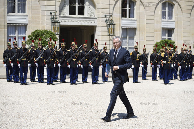 Légende : Emmanuel Macron reçoit Son Altesse Cheikh Tamim bin Hamad Al Thani, Emir de l'Etat du Qatar, au palais de l'Elysée. Bruno Le Maire, ministre de l'Economie et des Finances /// Emmanuel Macron receives His Highness Sheikh Tamim bin Hamad Al Thani, Emir of the State of Qatar, at the Elysee Palace. Bruno Le Maire, Minister of Economy and Finance - Paris - 06/07/2018 - Photo © Lionel Préau +33 (0)6 68 12 83 77