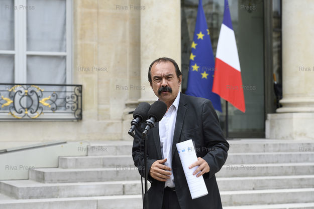 Légende : Emmanuel Macron reçoit les partenaires sociaux au Palais de l'Elysée pour évoquer avec eux l'agenda social des prochains mois. /// Emmanuel Macron receives the social partners at the Elysée Palace to discuss with them the social agenda of the coming months - Paris - 17/07/2018 - Photo © Lionel Préau +33 (0)6 68 12 83 77