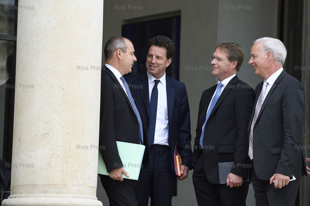 Légende : Emmanuel Macron reçoit les partenaires sociaux au Palais de l'Elysée pour évoquer avec eux l'agenda social des prochains mois. Laurent Berger, Secrétaire général de la CFDT - Geoffroy Roux de Bézieux, Président du MEDEF - François Asselin, Président de la CPME - Alain Griset, Président de l'U2P /// Emmanuel Macron receives the social partners at the Elysée Palace to discuss with them the social agenda of the coming months. Laurent Berger, General Secretary of the CFDT - Geoffroy Roux de Bézieux, President of the MEDEF - François Asselin, President of the CPME - Alain Griset, President of the U2P - Paris - 17/07/2018 - Photo © Lionel Préau +33 (0)6 68 12 83 77