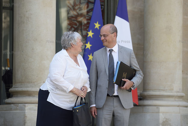 Légende : Conseil des ministres au palais de l'Elysée. Jacqueline Gourault, ministre auprès du ministre de l'Intérieur - Jean-Michel Blanquer, ministre de l'Education nationale /// Cabinet meeting at the Elysee Palace. Jacqueline Gourault, Minister attached to the Minister of Interior - Jean-Michel Blanquer, Minister of National Education - Paris - 25/07/2018 - Photo © Lionel Préau +33 (0)6 68 12 83 77