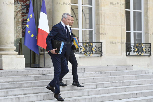Caption : Conseil des ministres au palais de l'Elysée. Bruno Le Maire, ministre de l'Economie et des Finances - Gérald Darmanin, ministre de l'Action et des Comptes publics /// Cabinet meeting at the Elysee Palace. Bruno Le Maire, Minister of Economy and Finance - Gérald Darmanin, Minister of the Action and Public Accounts - Paris - 22/08/2018 - Photo © Lionel Préau +33 (0)6 68 12 83 77
