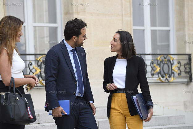 Légende : Conseil des ministres au palais de l'Elysée. Marlène Schiappa, secrétaire d'Etat chargée de l'Egalité entre les femmes et les hommes - Mounir Mahjoubi, secrétaire d'Etat chargé du Numérique - Brune Poirson, secrétaire d'Etat auprès du ministre de la Transition écologique et solidaire /// Cabinet meeting at the Elysee Palace. Marlène Schiappa, Junior Minister in charge of Equality between Women and Men - Mounir Mahjoubi, Junior Minister in charge of Digital - Brune Poirson, Junior Minister attached to the Minister of Ecological and Concerted Transition - Paris - 31/08/2018 - Photo © Lionel Préau +33 (0)6 68 12 83 77