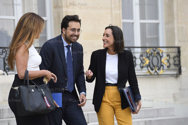 Légende : Conseil des ministres au palais de l'Elysée. Marlène Schiappa, secrétaire d'Etat chargée de l'Egalité entre les femmes et les hommes - Mounir Mahjoubi, secrétaire d'Etat chargé du Numérique - Brune Poirson, secrétaire d'Etat auprès du ministre de la Transition écologique et solidaire /// Cabinet meeting at the Elysee Palace. Marlène Schiappa, Junior Minister in charge of Equality between Women and Men - Mounir Mahjoubi, Junior Minister in charge of Digital - Brune Poirson, Junior Minister attached to the Minister of Ecological and Concerted Transition - Paris - 31/08/2018 - Photo © Lionel Préau +33 (0)6 68 12 83 77