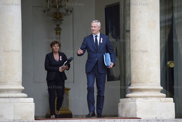 Légende : Conseil des ministres au palais de l'Elysée. Annick Girardin, ministre des Outre-mer - Bruno Le Maire, ministre de l'Economie et des Finances /// Cabinet meeting at the Elysee Palace. Annick Girardin, Minister of Overseas - Bruno Le Maire, Minister of Economy and Finance - Paris - 03/10/2018 - Photo © Lionel Préau +33 (0)6 68 12 83 77
