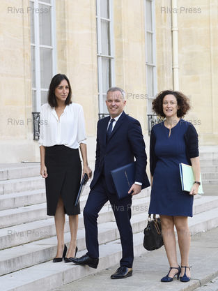 Légende : Conseil des ministres au palais de l'Elysée. François de Rugy, ministre d'Etat, ministre de la Transition écologique et solidaire, entre Brune Poirson et Emmanuelle Wargon, secrétaires d'Etat /// Cabinet meeting at the Elysee Palace. François de Rugy, Minister of State, Minister of Ecological and Concerted Transition, between Brune Poirson and Emmanuelle Wargon, Junior Minister - Paris - 17/10/2018 - Photo © Lionel Préau +33 (0)6 68 12 83 77