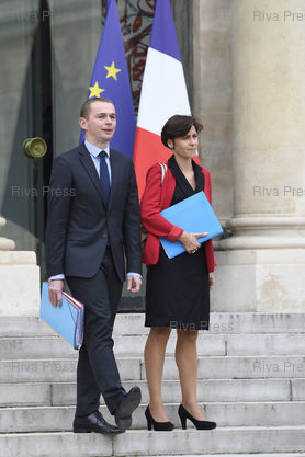 Légende : Conseil des ministres au palais de l'Elysée. Olivier Dussopt, Secrétaire d'État auprès du ministre de l'Action et des Comptes publics - Christelle Dubos, secrétaire d'Etat auprès de la ministre des Solidarités et de la Santé /// Cabinet meeting at the Elysee Palace. Olivier Dussopt, Secrétaire d'État auprès du ministre de l'Action et des Comptes publics - Christelle Dubos, Junior Minister to the Minister of Solidarities and Health - Paris - 17/10/2018 - Photo © Lionel Préau +33 (0)6 68 12 83 77