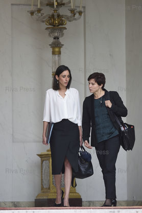 Légende : Conseil des ministres au palais de l'Elysée. Brune Poirson, secrétaire d'Etat auprès du ministre de la Transition écologique et solidaire - Roxana Maracineanu, ministre des Sports /// Cabinet meeting at the Elysee Palace. Brune Poirson, Junior Minister attached to the Minister of Ecological and Concerted Transition - Roxana Maracineanu, Minister of Sports - Paris - 17/10/2018 - Photo © Lionel Préau +33 (0)6 68 12 83 77